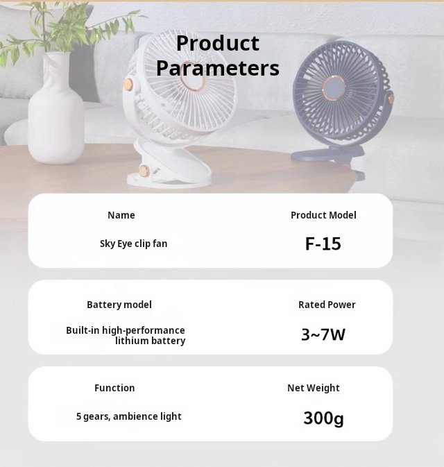 Battery life: long. Sound level: very quiet. Wind effect: strong wind with five-speed adjustment, very convenient. Portability: the table can be clamped on the edge and can be installed in a variety of ways and directions, which is very good.