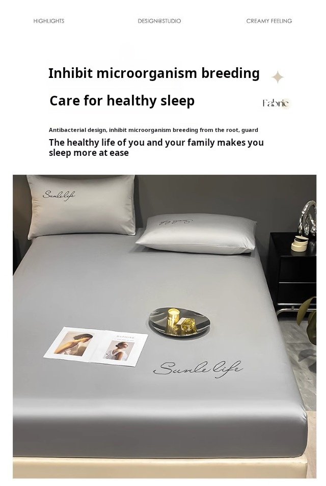 This fitted sheet is made of ice silk fabric, which is light and breathable, refreshing and comfortable to the touch. The unique antibacterial technology effectively inhibits the growth of bacteria, keeps the bed clean and hygienic, and is very comfortable to sleep on.