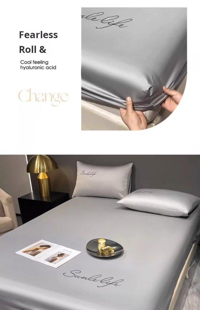 【Singapore Fast Delivery】”Class A Antibacterial Ice Silk Fitted Sheet – Single Piece Mattress Cover for Summer – Full Wrap Cooling Bed Sheet for Box Spring – 3-Piece Set Option Available”