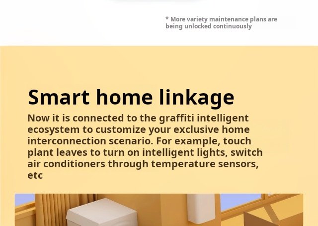 Rated 5 out of 5IVY Smart Flower Pot Partner Bringing IVY home is not just about raising plants, but also about adding more fun and emotion to life. In the future, it will also launch more functions that connect to smart homes, such as controlling the lights at home by touching the plants. This lifestyle innovation not only brings us closer to nature, but also makes our home life smarter and more convenient.