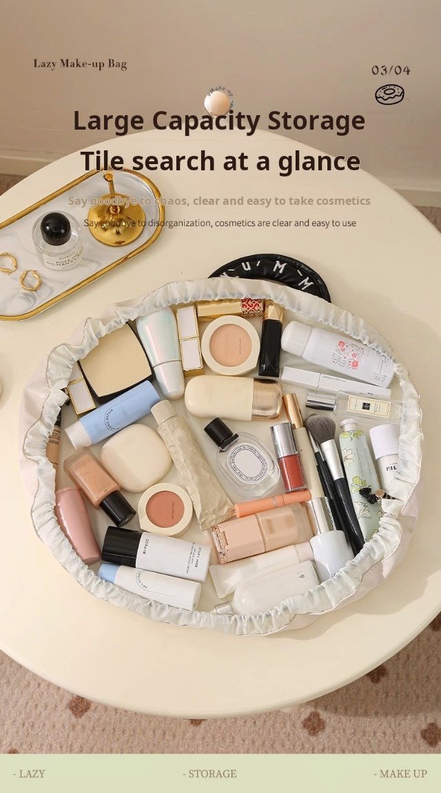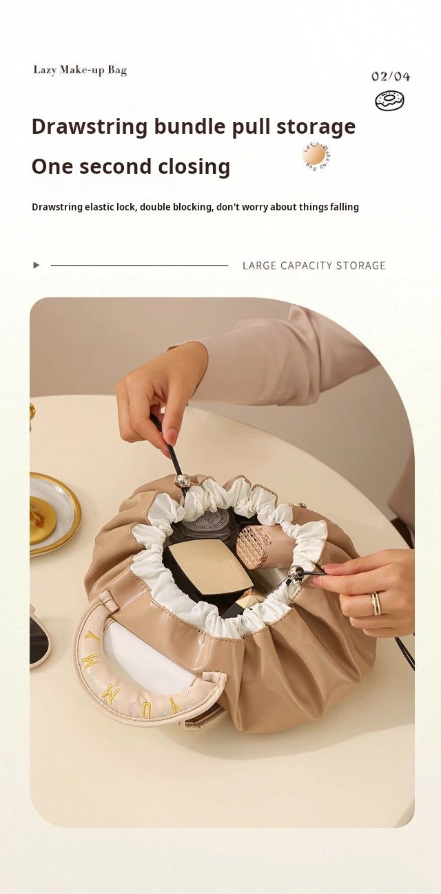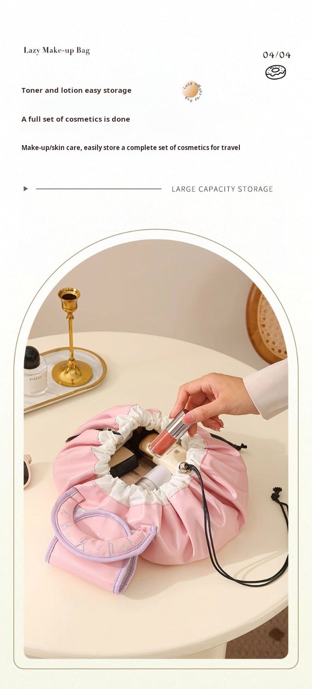 【Singapore Fast Delivery】”New Lazy Makeup Bag – Portable Large-Capacity Travel Drawstring Toiletry Organizer for Women”