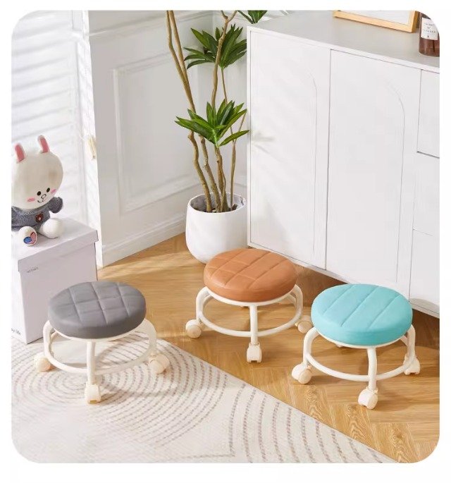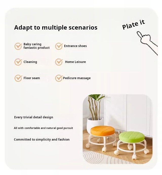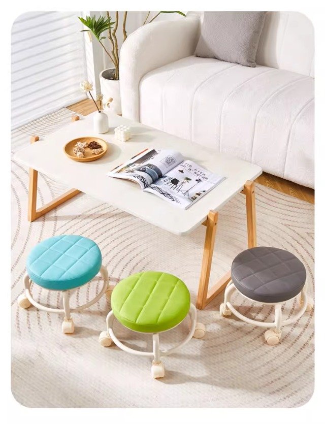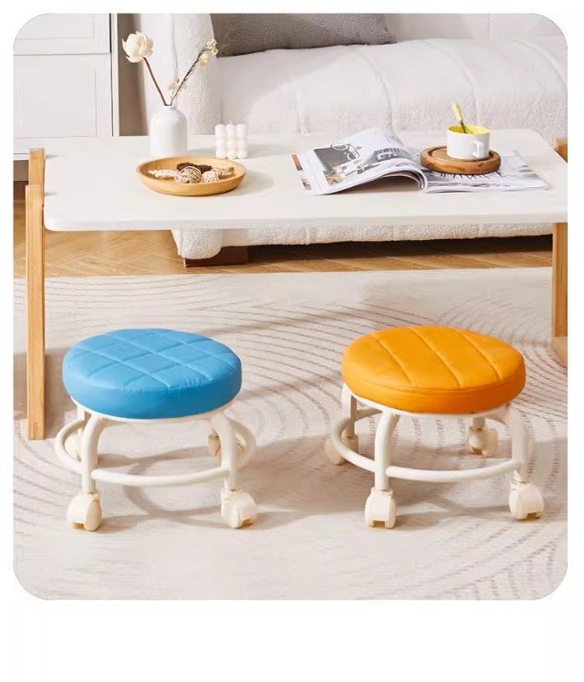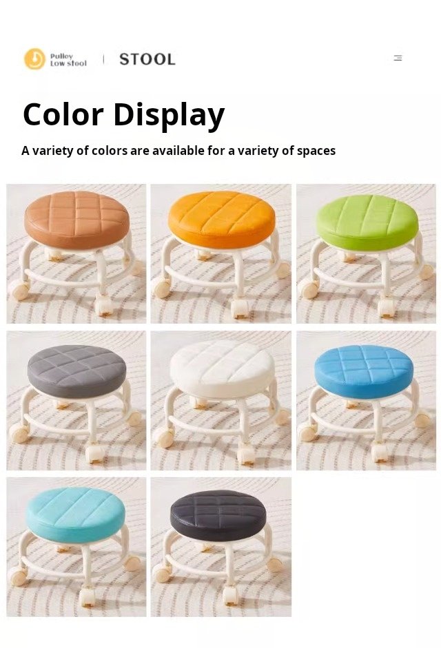 【Singapore Fast Delivery】”Swivel Low Stool with Wheels – Home Use Trending Stool, Multi-Purpose Rolling Stool for Kids, Parenting Aid, Grouting Seat, Round Stool with Universal Casters”