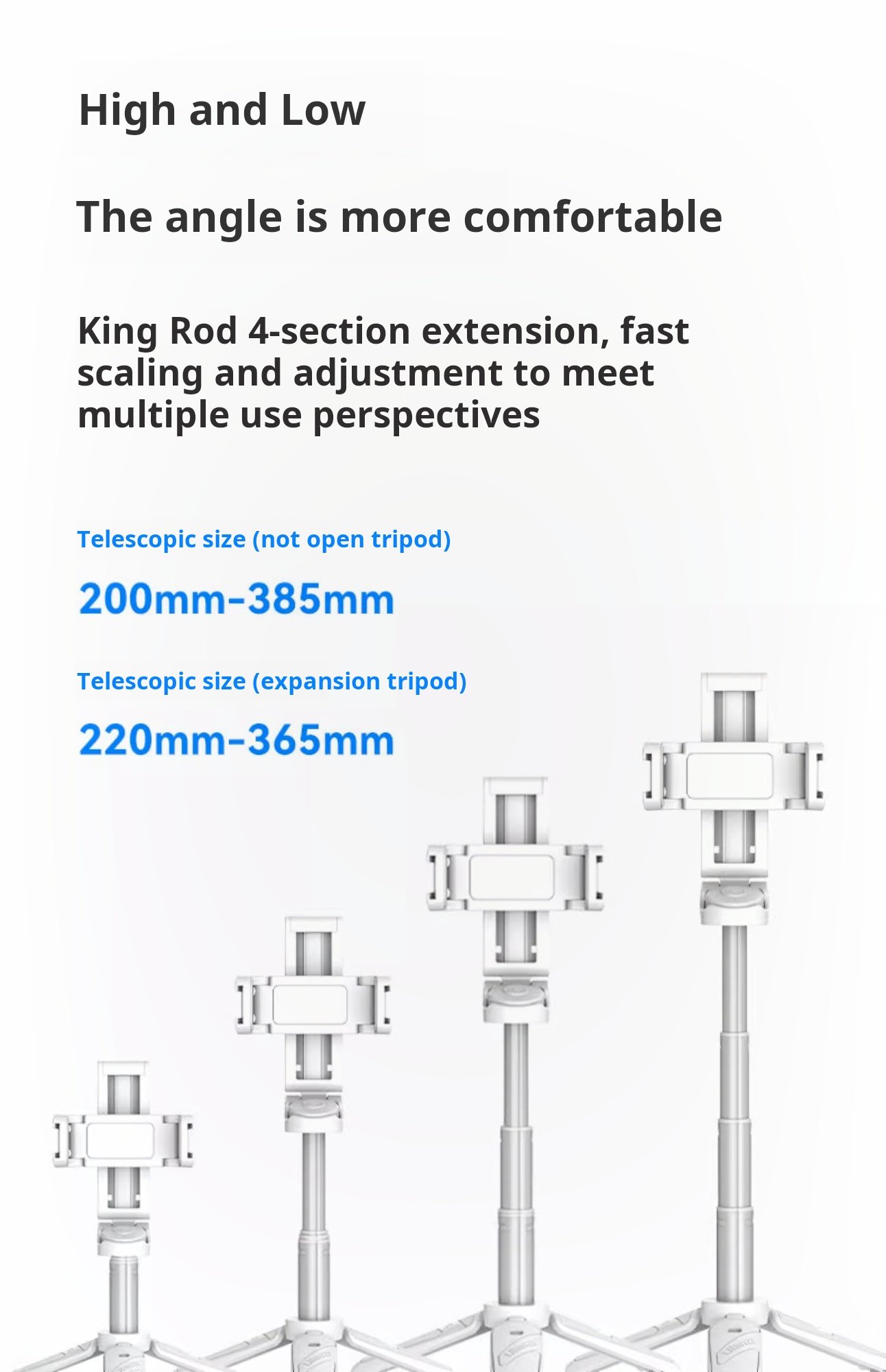 Adjustable length, flexible shooting angles.