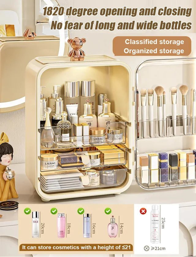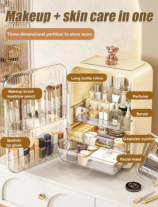 Very nice and practical makeup cabinet, can hold a lot of things, cosmetics stored in the desktop suddenly become clean and tidy, and it is very convenient to take and use, recommended