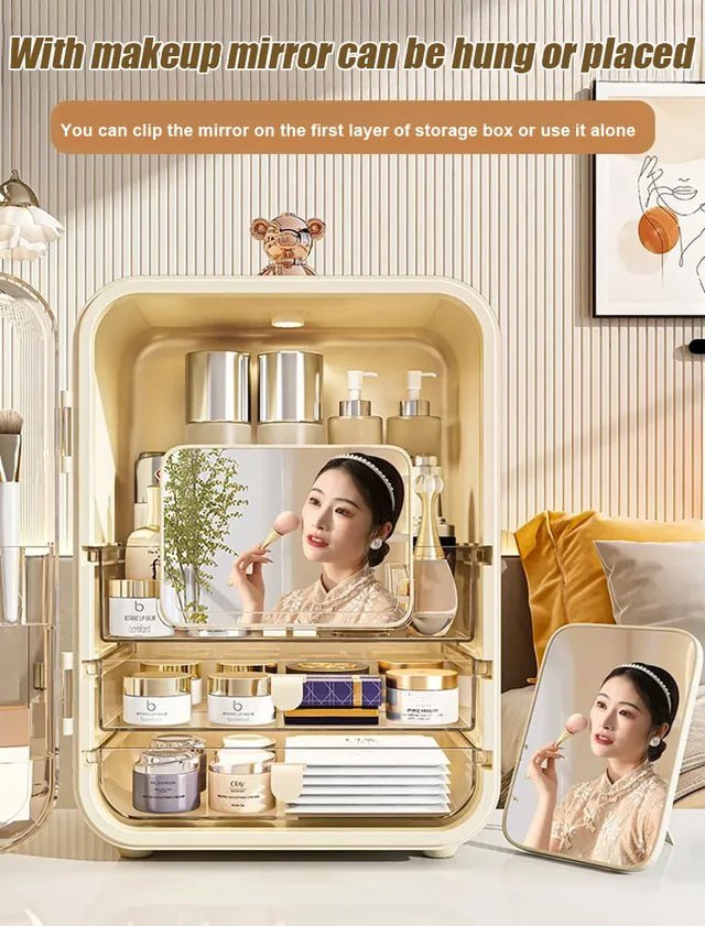 Product details of Light Luxury Cosmetic Organizer Large Capacity Cosmetics Storage Box With Led Mirror Jewellery Organizer Dustproof Luxury Portable Cosmetic Organizer