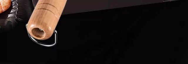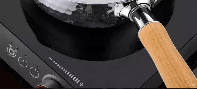 The wooden handle stays cool while cooking.