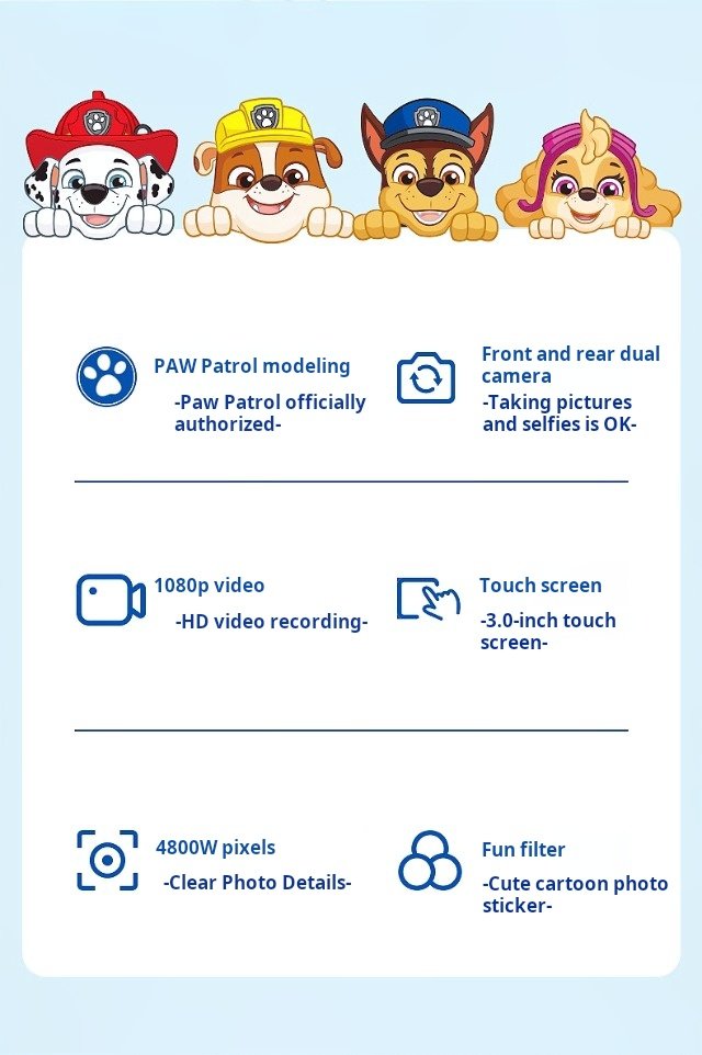 🇸🇬 Singapore Fast Delivery Paw Patrol Kids’ Camera Toy – Can Take Photos and Videos – HD Digital Color Instant Print Camera for Toddlers